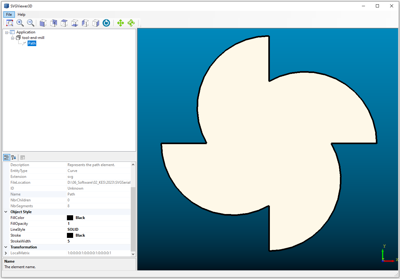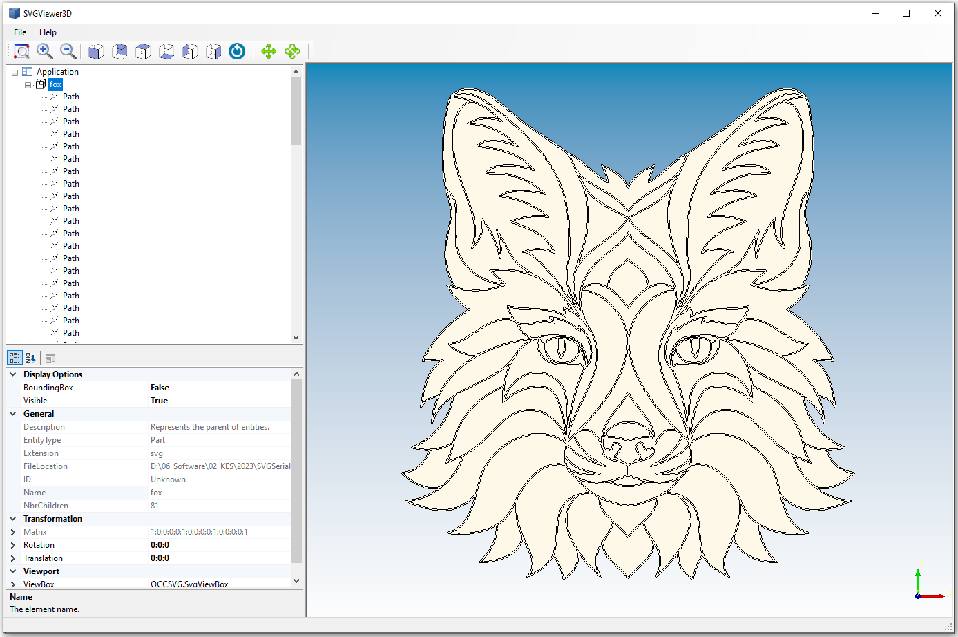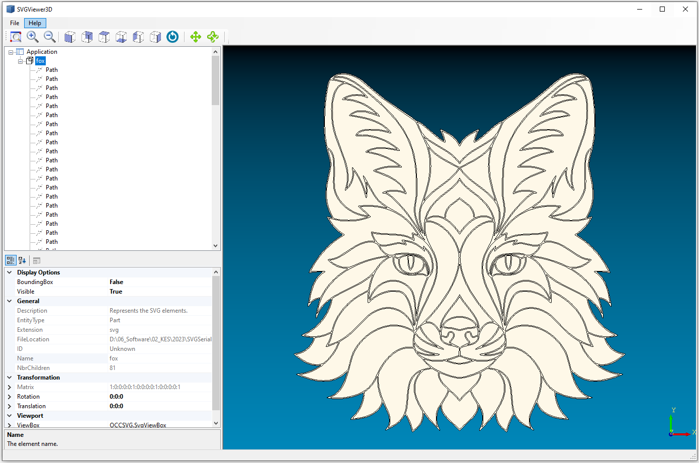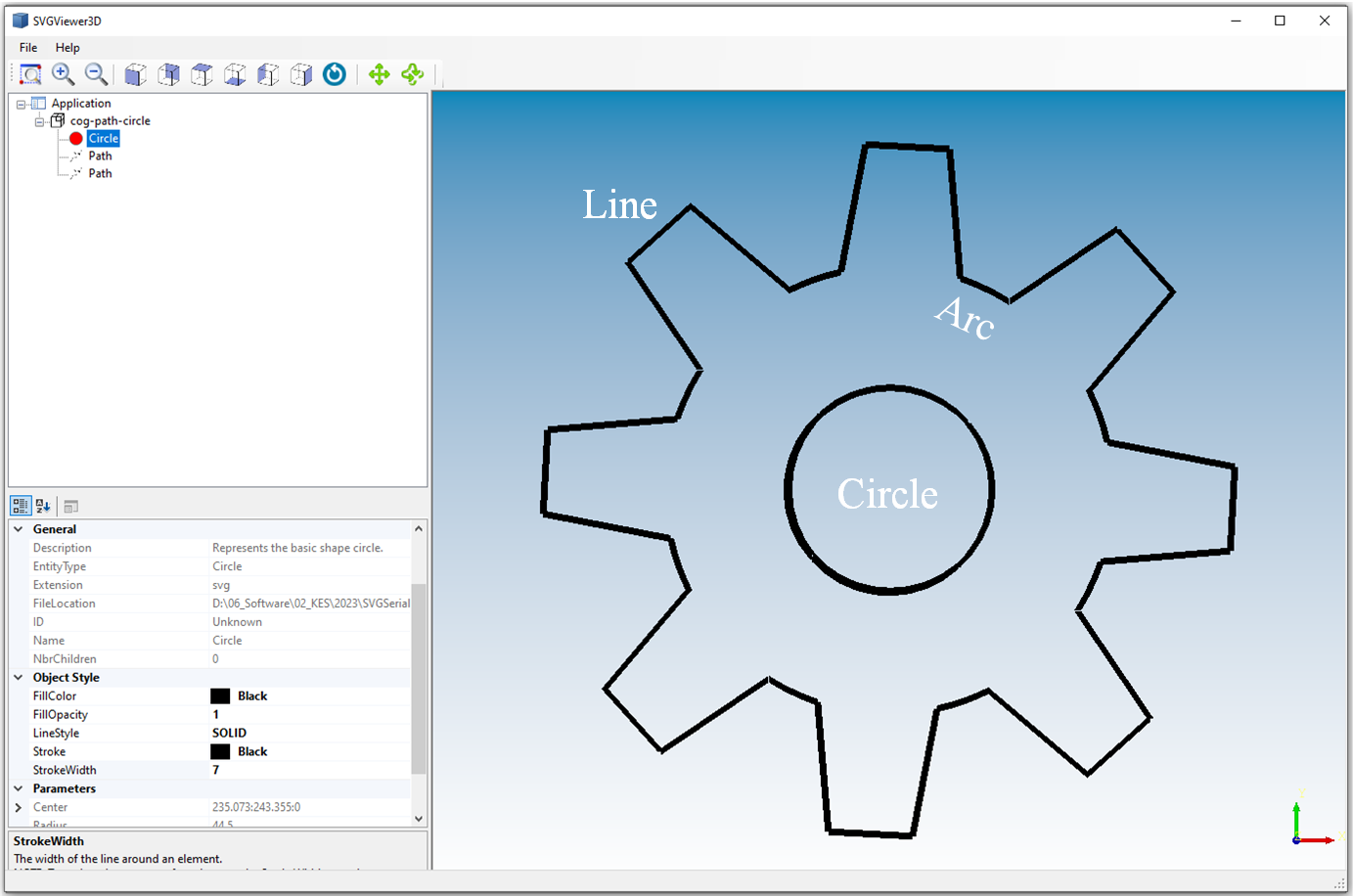 Evo 3dView liest SVG-Dateien und interpretiert Formen, Kurven und Strukturen mit höchster Präzision. Dabei werden alle gängigen SVG-Elemente wie Linien, Rechtecke, Kreise, Ellipsen, Polygone, Polylinien, Text sowie komplexe Pfade mit Bezierkurven und Ellipsenbögen vollständig unterstützt.