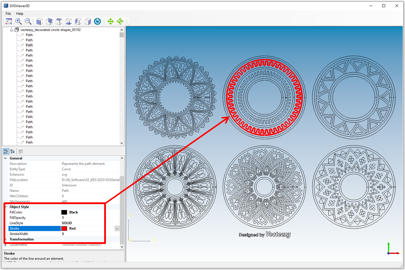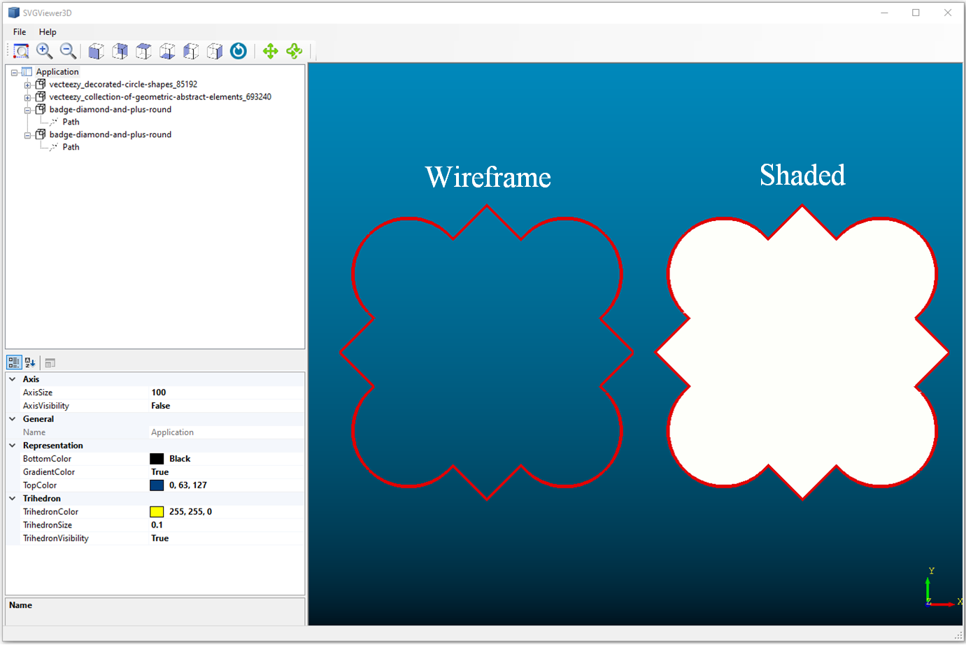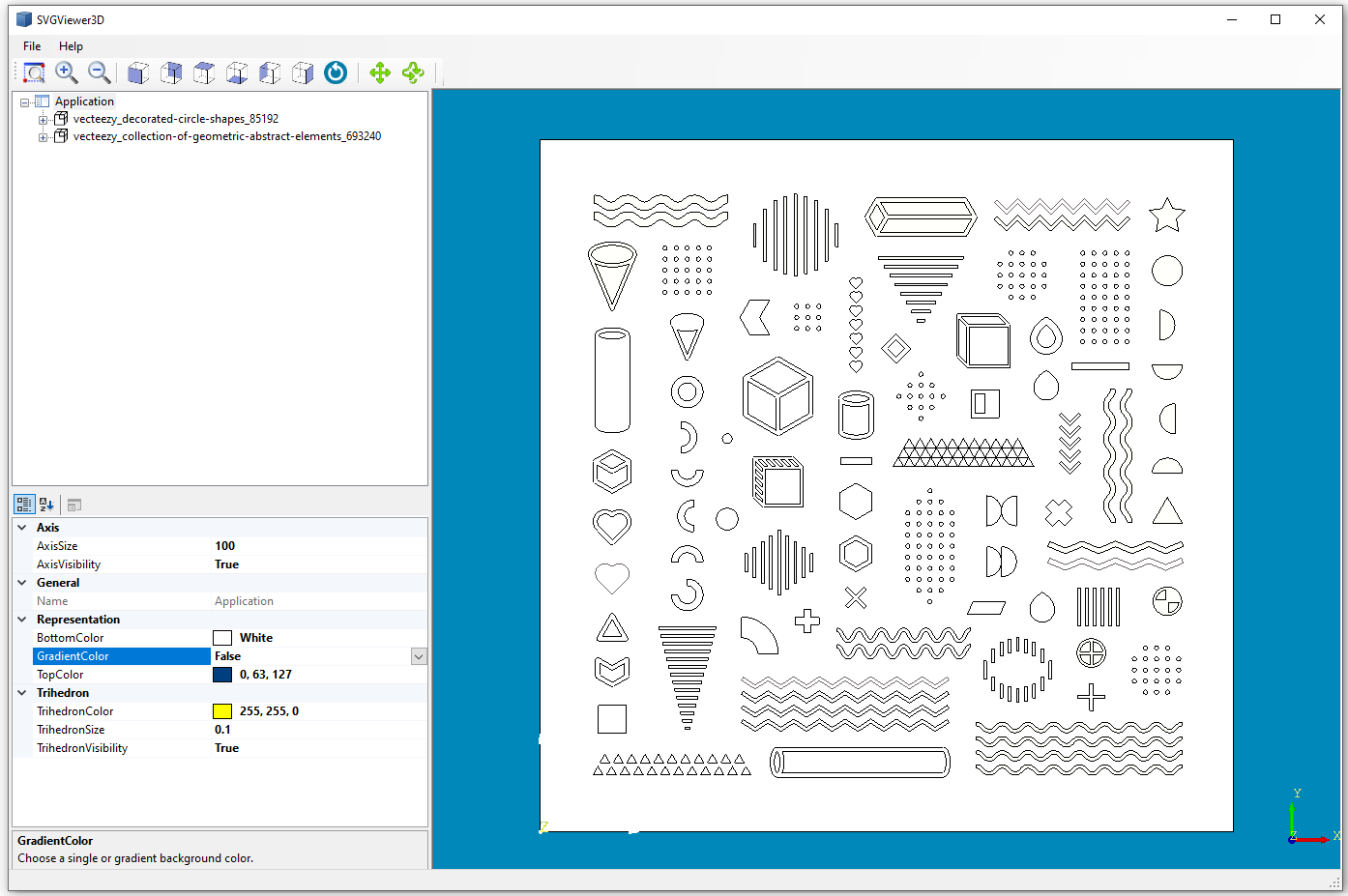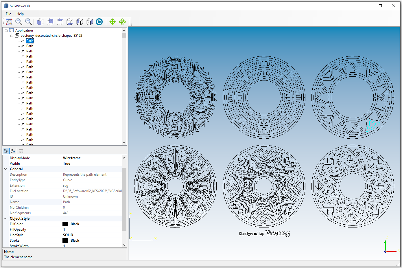 Evo 3dView liest SVG-Dateien und interpretiert Formen, Kurven und Strukturen mit höchster Präzision. Dabei werden alle gängigen SVG-Elemente wie Linien, Rechtecke, Kreise, Ellipsen, Polygone, Polylinien, Text sowie komplexe Pfade mit Bezierkurven und Ellipsenbögen vollständig unterstützt.